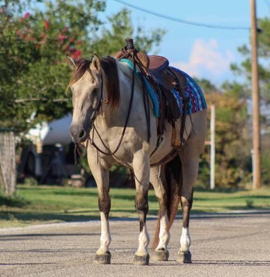 If you’re seeking a ranch horse that exudes both style and substance, Judo is the perfect choice. This 14-year-old dunalino stands 15 hands tall and boasts a flashy appearance that is sure to turn heads. But Judo is more than just a pretty face – He carries the El Sombreo Ranch brand from Old Mexico where he was born and trained which gave him extensive experience in ranch work, including roping, gathering, loading, and working with calves before making his journey to the United States where he’s continued in his ranch duties and many trail miles. Judo has an amazingly smooth jog and short lope that you can ride for hours. He is easy to handle and care for. He has shoes on all four feet. He gets along in a mixed herd and his quiet temperament makes him a welcome addition to any ranch. Whether you need a reliable mount for challenging terrain or a versatile horse that can handle any task, Judo is the ultimate choice. Please do not hesitate to call or text with any questions.